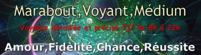 Medium de naissance, Expert de l'amour.Guérisseur voyant consultant tous poblème a de solution.Vous êtes à la recherche d'une bonne voyante. MR FODEHOU Voyant Medium africain Don Heriditaire de Père en Fils Depuis Plusieurs Génération Vous qui souffrez d'une séparation, vous qui voulez un homme ou une femme, vous qui souhaitez le retour rapide de l'être aimé, vous qui voulez mettre votre couple à l'abri des risques éventuels d'une rupture, vous voulez savoir l'avenir pour mieux vivre le présent, et avoir de la chance dans vos affaires, commerces, finance et jeux, ou vous ètes envoûter vous souhaitez faire un desenvoutement ? Pour tous autre problèmes Contactez moi! Résultat en 2 Jours ! ou Remboursser Consultation Gratuit ! Le Voyant Ali Grâce à ces travaux occultes infailibles et sa clairvoyance héréditaire, résoudra à jamais vos problèmes. Pas Sérieux S'abstenir Merci Résultat 100% Garantie j'ai la possibilité de me déplacé à votre domicile Je travail aussi par correspondance facilite le paiement et Reçu disponible 0033612172635